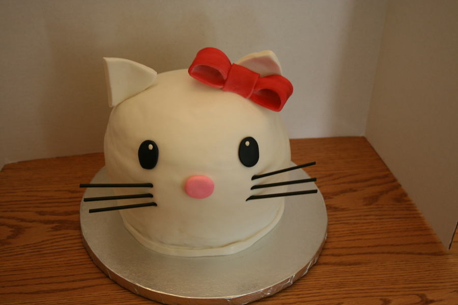 Carved Hello Kitty cake, fondant covered and fondant accents.