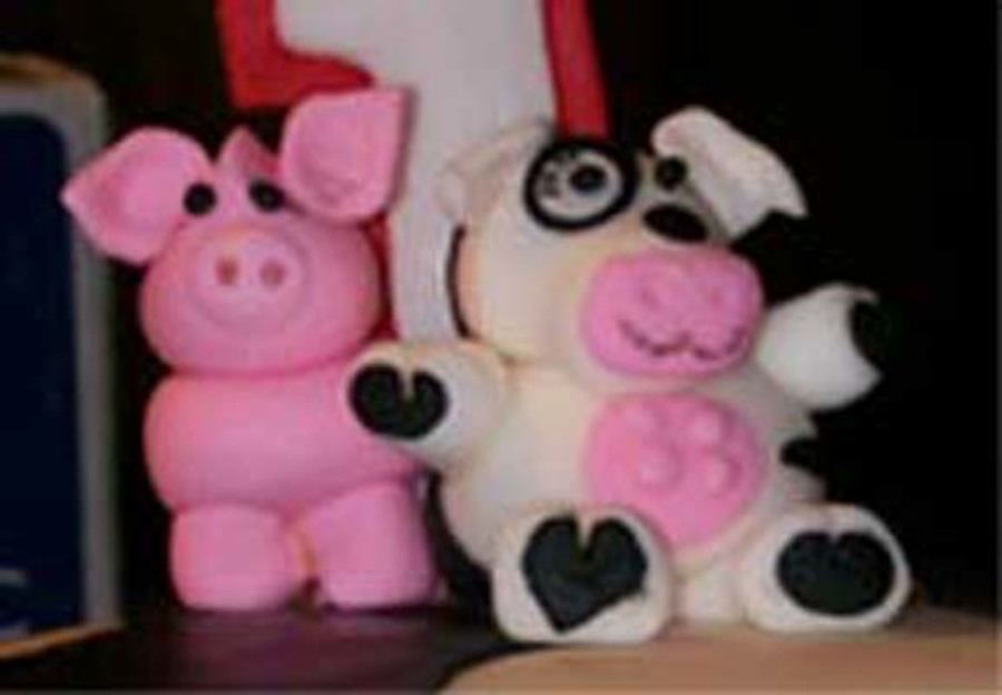 Pig and Cow of gumpaste. Wingin' it with my first farm animals! ;)