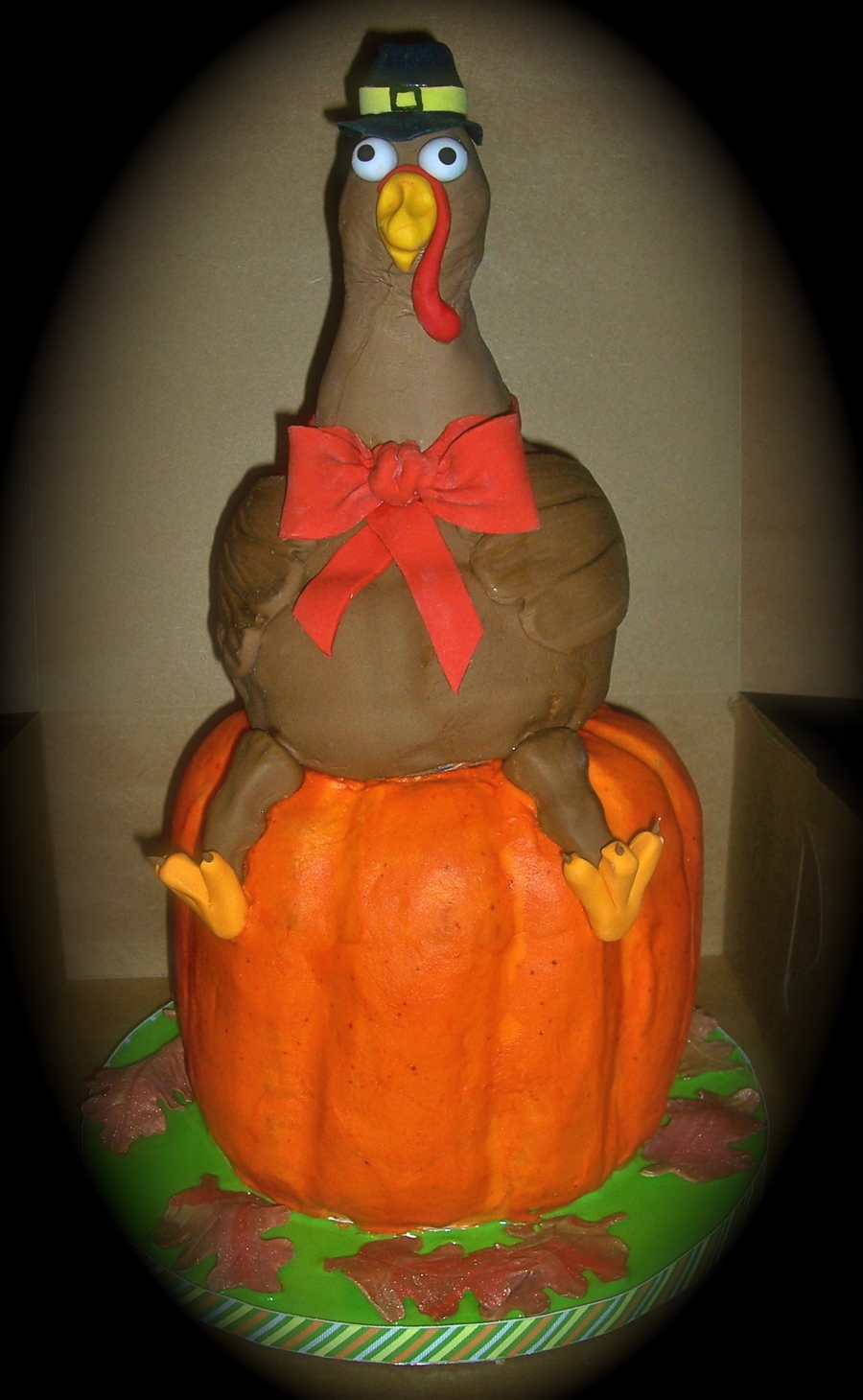 All edible. Took picture before adding the gumpaste turkey's feathers because they would not travel without damage.
