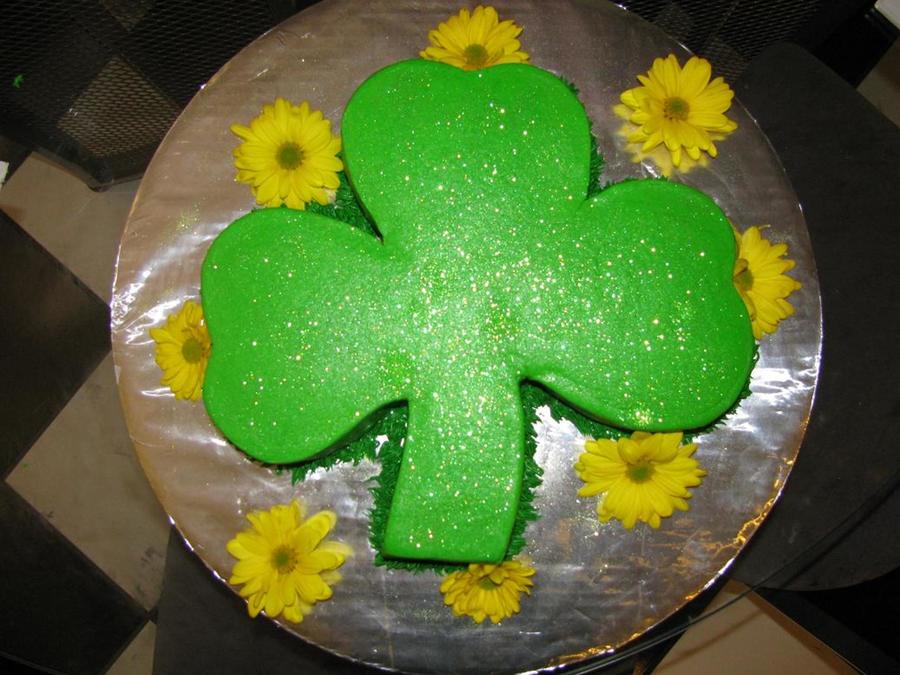 Shamrock make of 3 heart shaped cakes and carved stem. All BC.