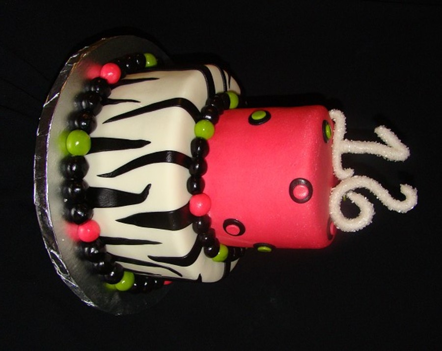 Double layer 10" bottom and double layer 6" top. Both tiers covered in MMF with MMF accents. 16 is gumpaste rolled in decorative sugar. Love this fun cake!