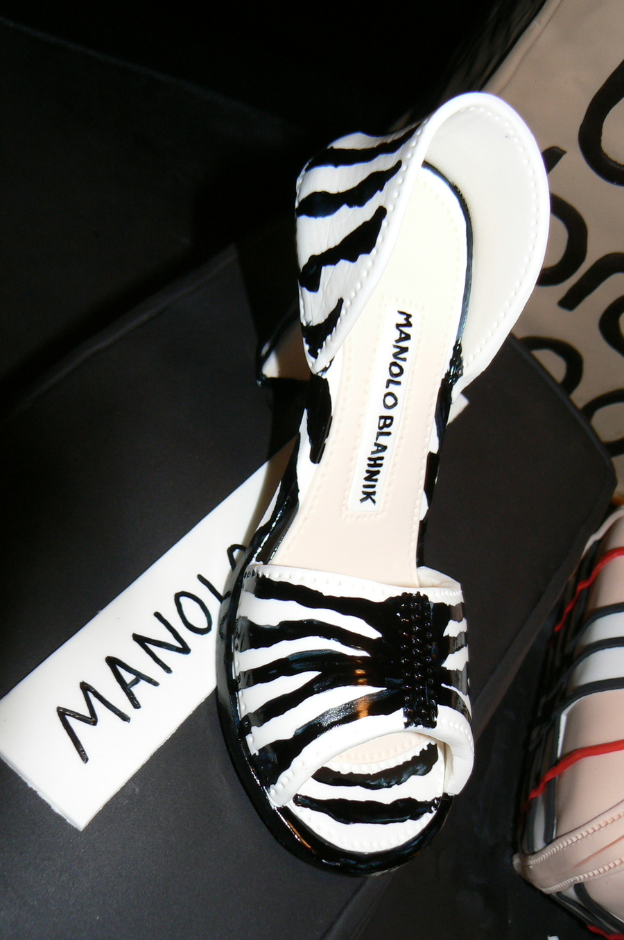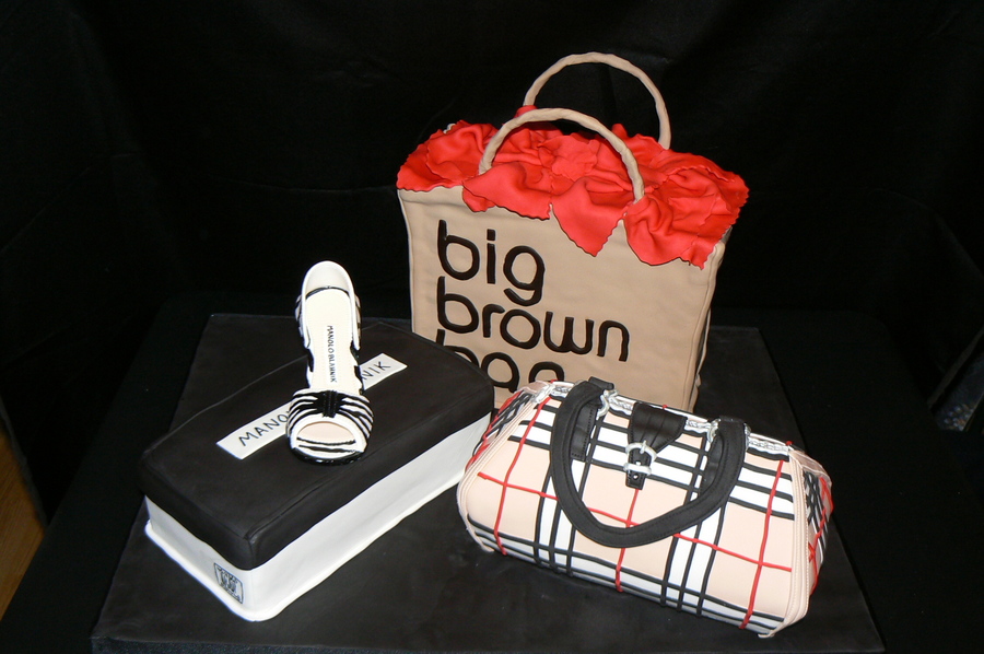 I made this cake for a client whose friend was an avid shopper. All three are cakes with fondant. The shoe and bag handles are gumpaste.