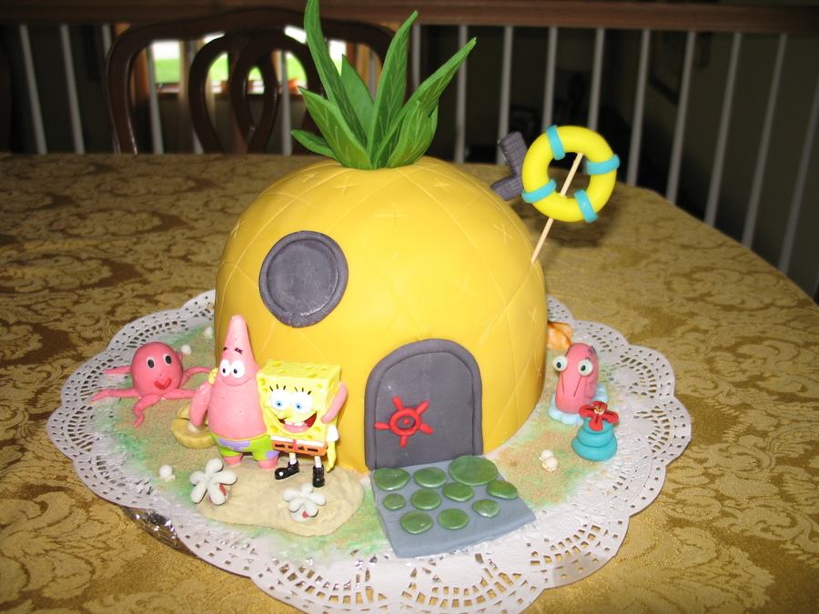 I made this cake for my first boy 2nd birthday party everything but Sponge Bob and Patirc is fondant, my husband got them and he wanted me to put them on the cake to save time, it took me 3 days to do it, it wad my 2nd fondant cake. TFL
