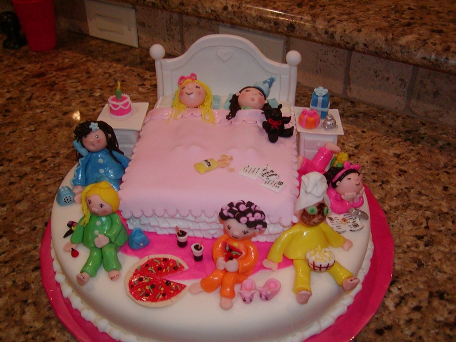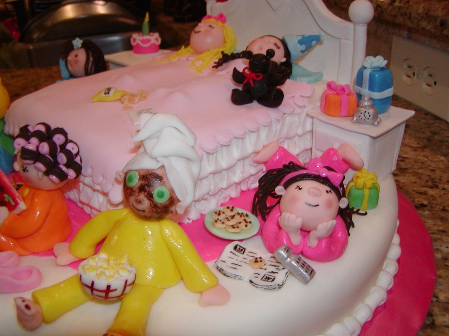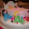 Got this idea from Cakenut516. Thanks for the beautiful cake from which to follow! It was a lot of fun and took forever, but was worth it! Bed and base are cake, covered in fondant, all figures are fondant and bed and side tables are pastillage.