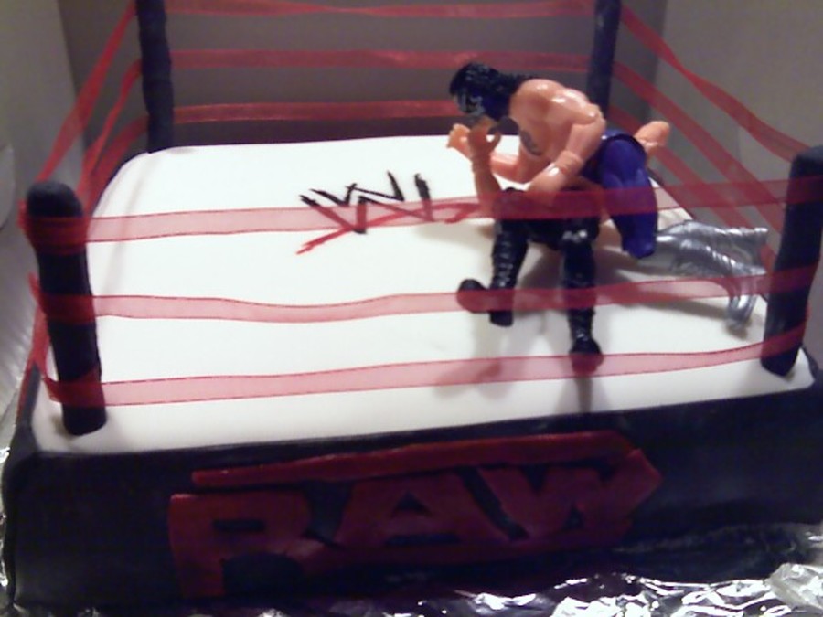 Covered with fondant. The wrestler's arefigures I picked up from the store.