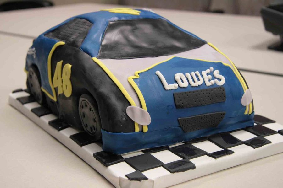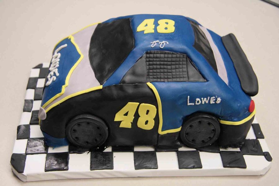 WASC made for a 4 year old who loves Jimmy Johnson. It was modeled after his toy car so it's a little stockier that a normal car. It was my first carved car cake so I learned alot. Used Fondarific fondant. TFL