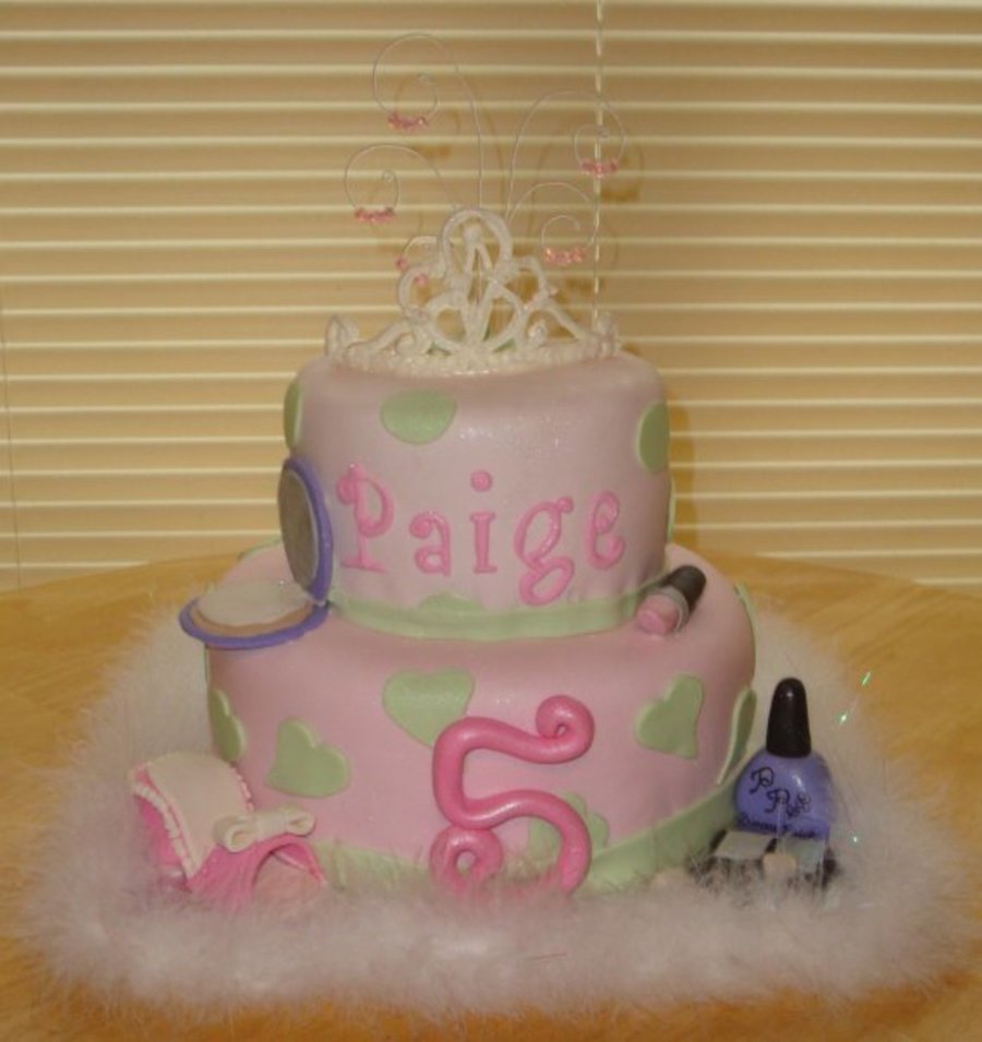 For the girliest of little girls, a make-up themed cake. It ws chocolate filled with oreo mousse and covered in chocolate BC then fondant. The high heel, compact, eye shadow, lipstick, polish, and "5" were all gumpaste. The tiarra was of RI and my first. She loved the added bling of the beads and boa!