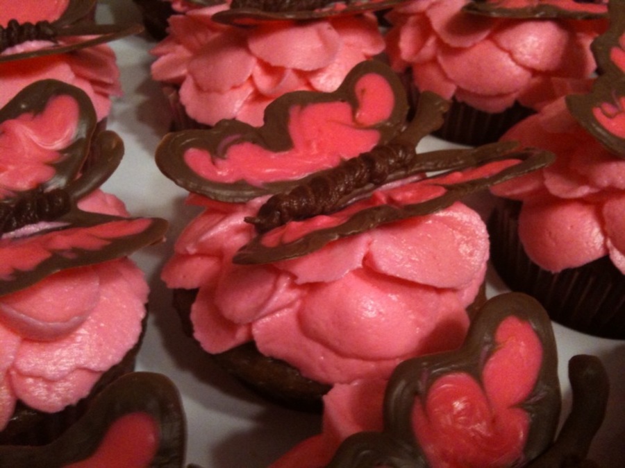 I made the butterflies out of chocolate and piped the flower petals with buttercream. I thought they were really pretty.