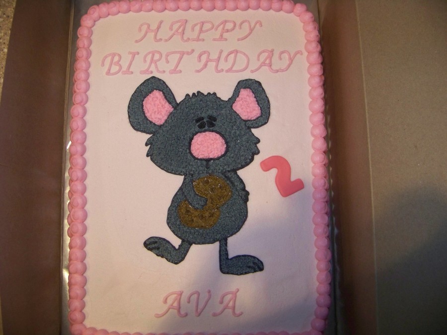 Vanilla cake with vanilla buttercream, cartoon mouse for a 2nd birthday