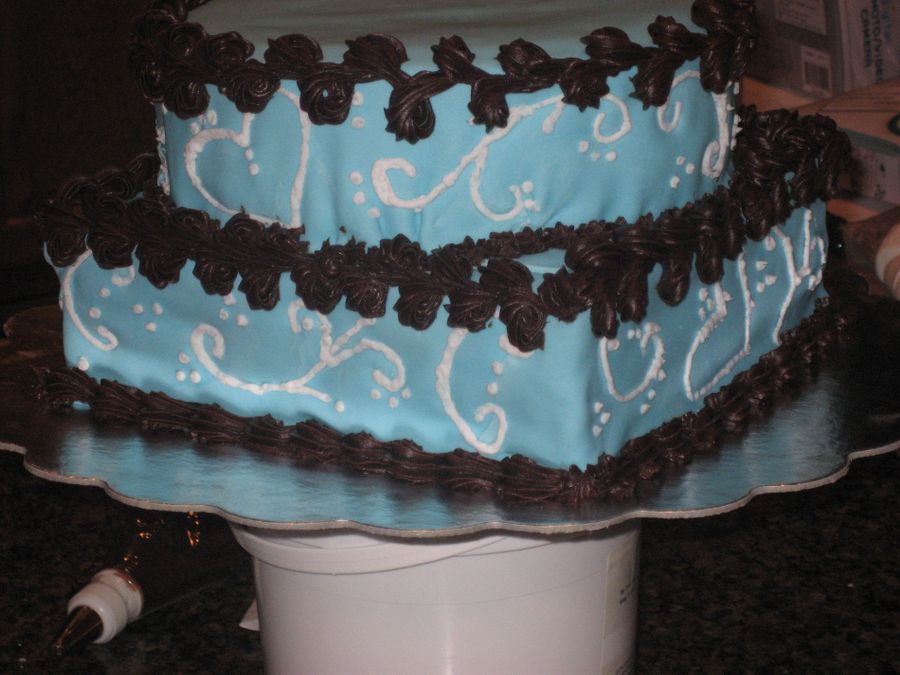 Two layer, fondant covered birthday cake with zombies busting out of it. Got the idea from a few of you on CC. Thanks!!