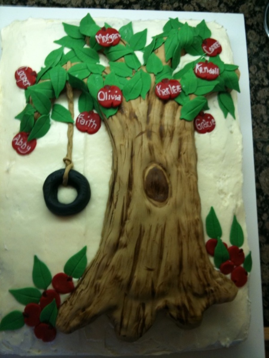 This cake is for my granddaughter's kindergarten teacher that is retiring. Each apple has the name of a current child in her class.
