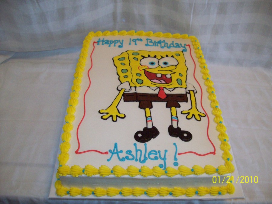 12x18 sheetcake iced in buttercream. Spongebob drawn freehand.