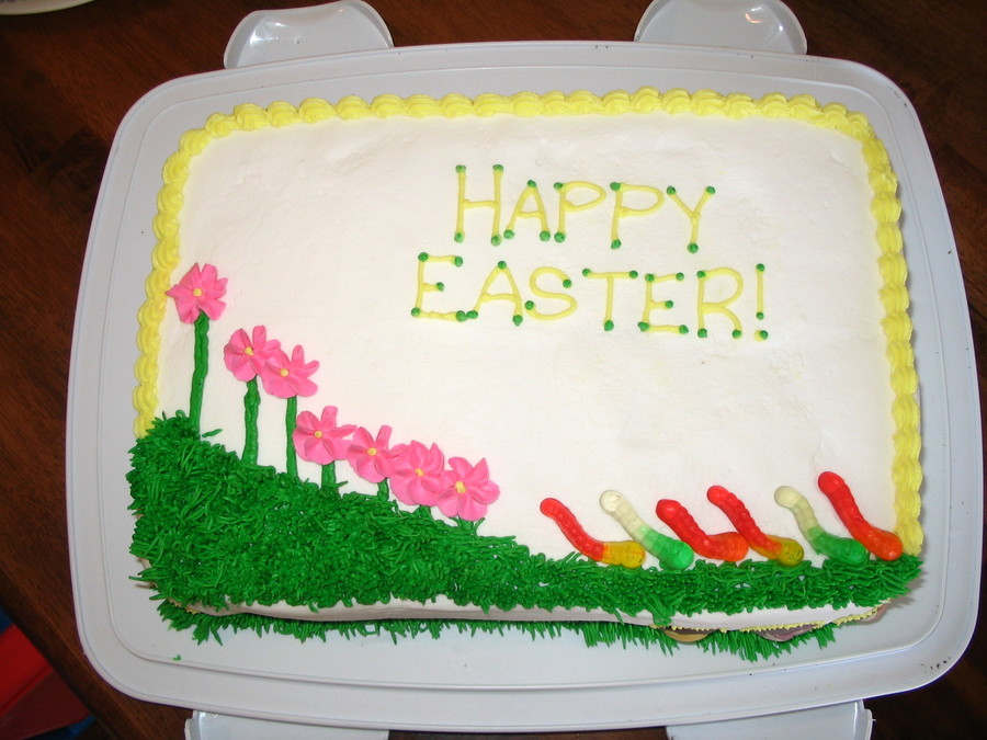 First cake made after my first Wilton Class. Buttercream frosting, gummi worms.