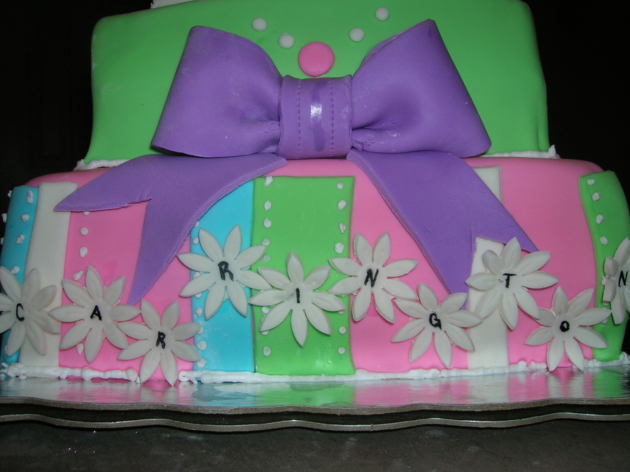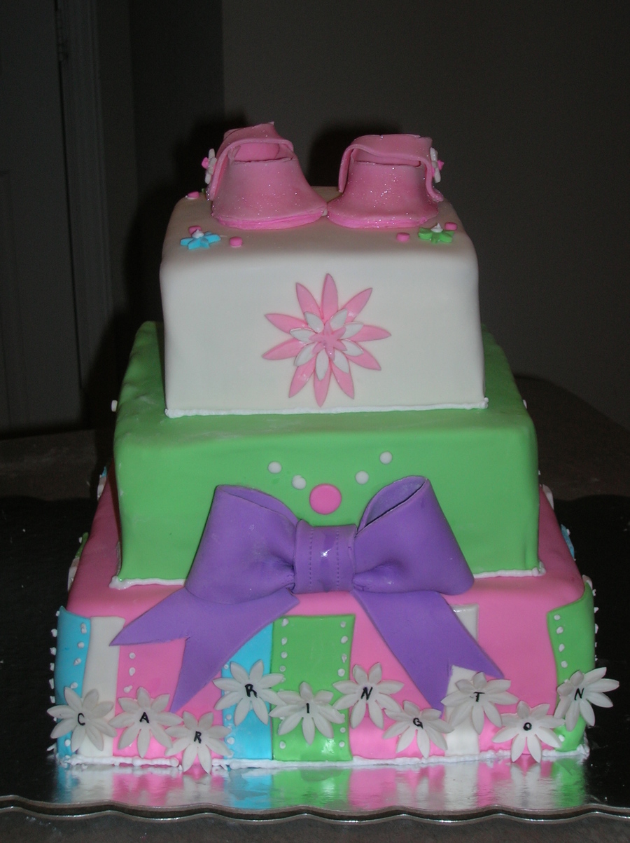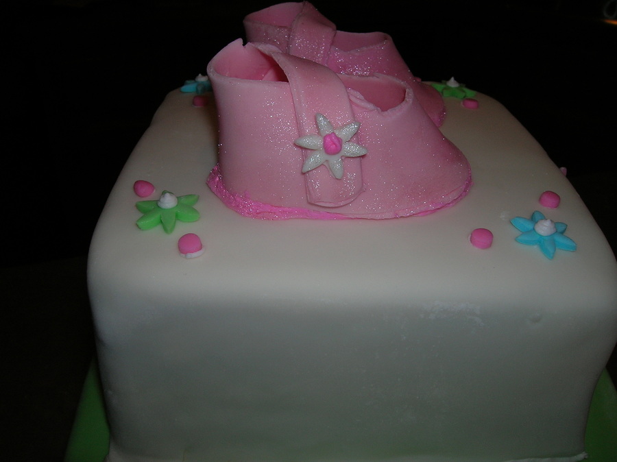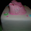 This was my first attempt at a bow and shoes. This was inspired by a cake romy789 did (thanks for the shoe template). I tried to match it with the napkins and plates that were used in the shower. It was so much fun.