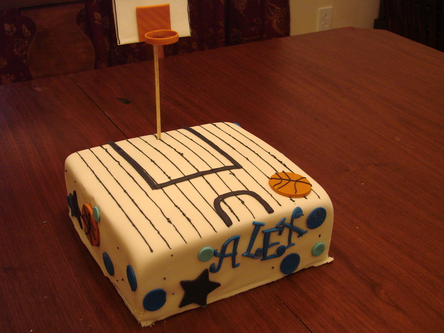 I had a hard time with this one. Royal Icing stripes, gumpaste board and rim. Fondant basketballs.