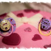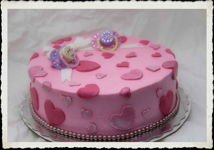 Chocolate cake with buttercream and fondant hearts the soothers are from the dollar store with self adhesive righinstones