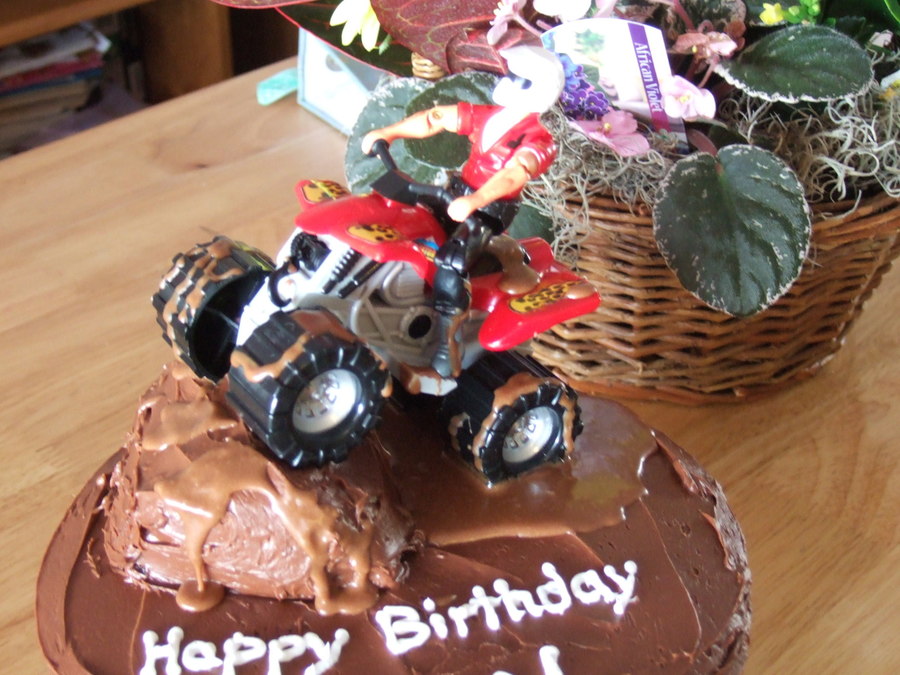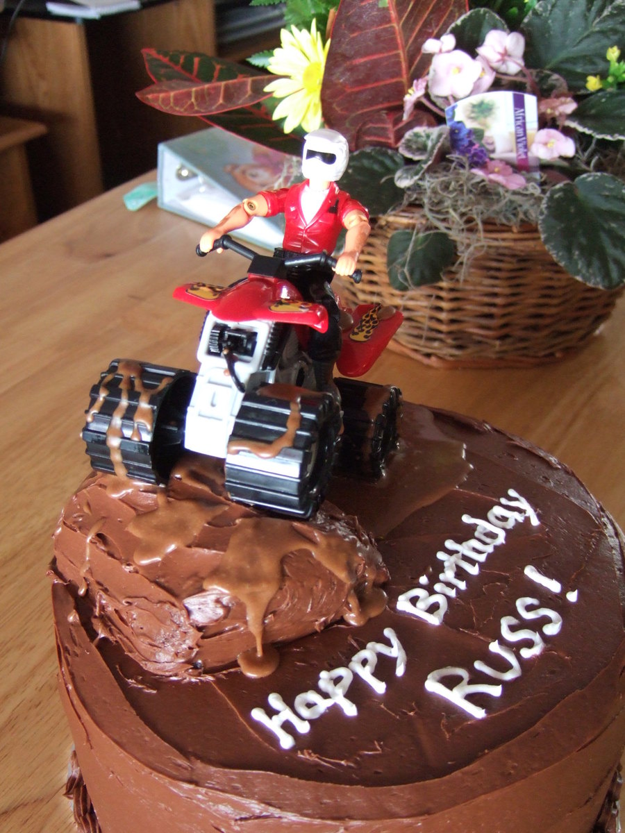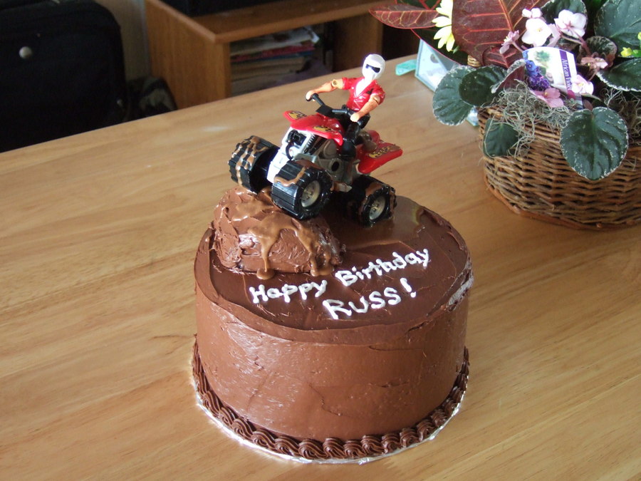 4 Wheeler cake. I was asked to do a 4 wheeler cake in all chocolate. This is the best I could come up with. Two ideas were blatantly stolen from a fellow CCer - Dreamstocakes.