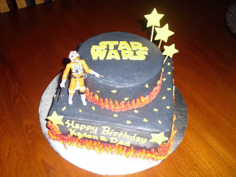 cake is a chocolate WASC with caramel filling. buttercream with MMF accents. luke is a toy.
