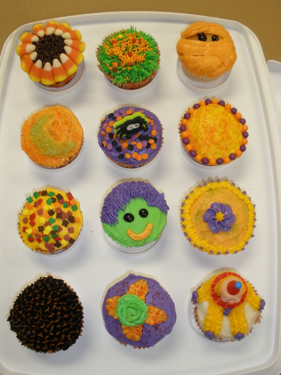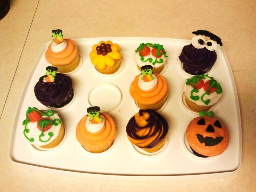 This are yellow cupcakes with buttercream icing and decorations.