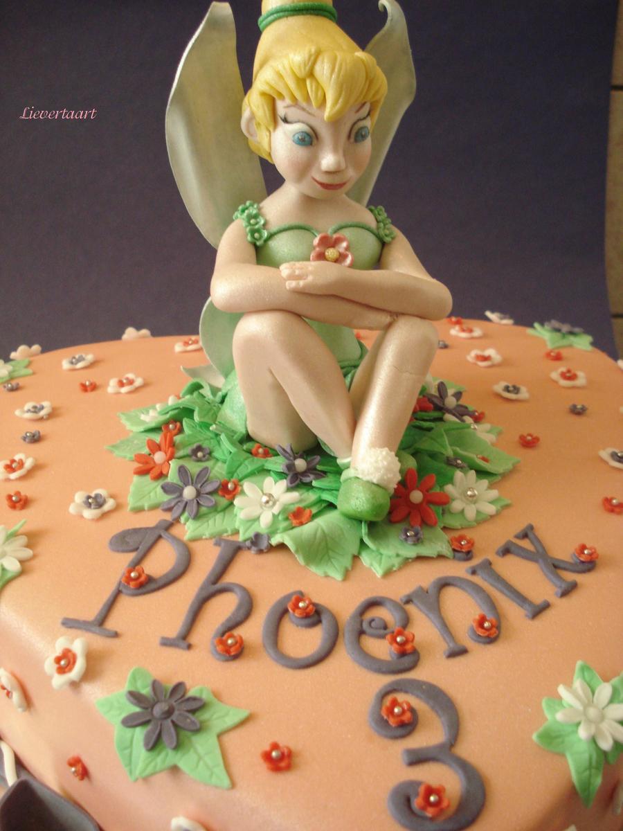 A fondant tinkerbell on a choco filled cake, Thank you for looking