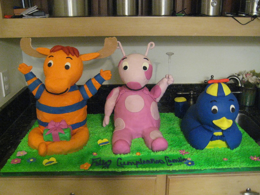 One cake is chocolate , one is vanilla and the other is rainbowlicious. All with vanilla buttercream and then covered and decorated in mmf. This cake was very challenging yet fun to make!