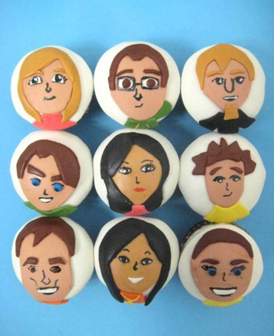 Inspired by bakerella! These were red velvet with cream cheese frosting. I made these for a wii party--made little miis of my friends and then reproduced them in cupcake form!