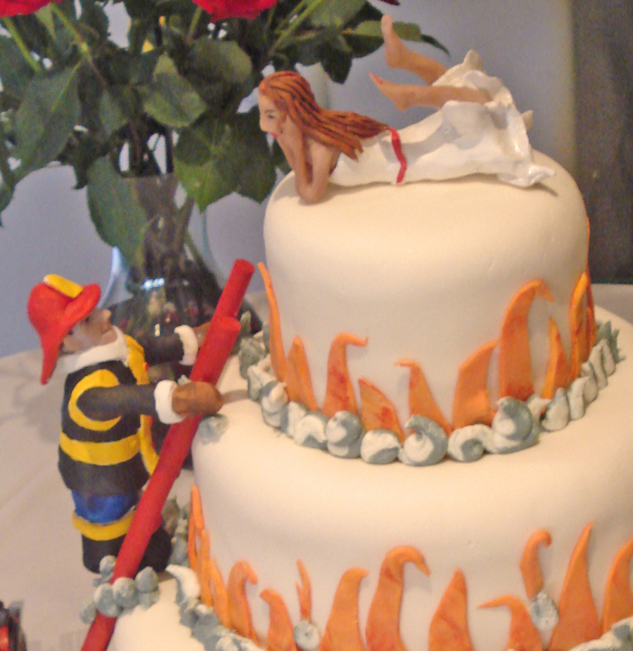 This was done for our mail lady who was marrying a fireman. The sculptures are gumpaste.