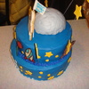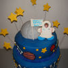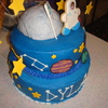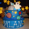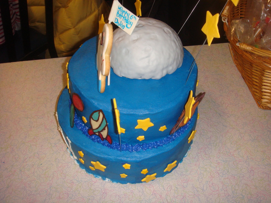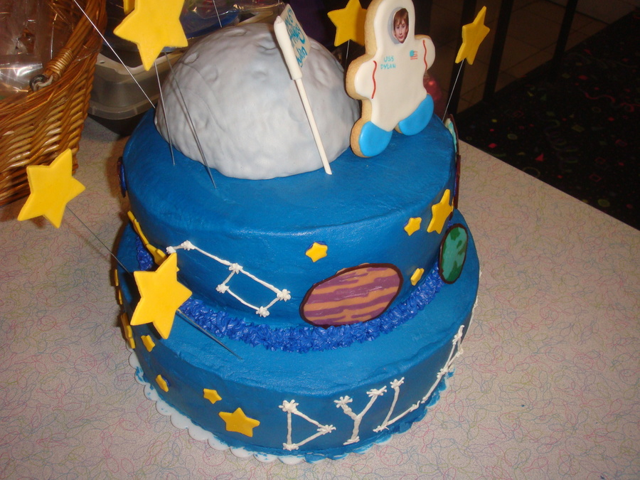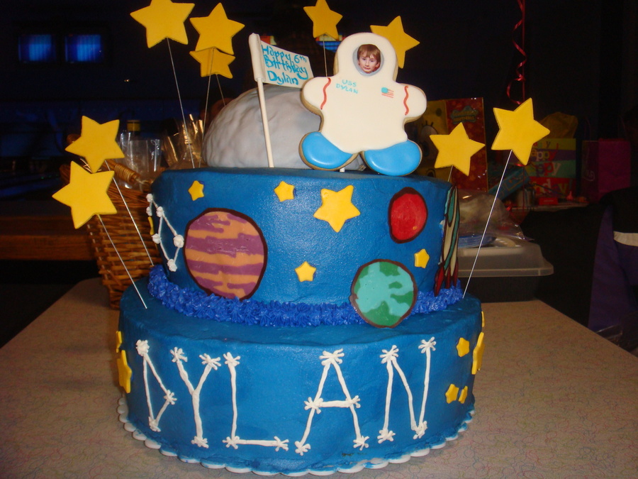 Space cake I made for my son. I warped the face on the cookie so I could upload it because I think pics aren't allowed on here, so thats why the cookie looks odd.