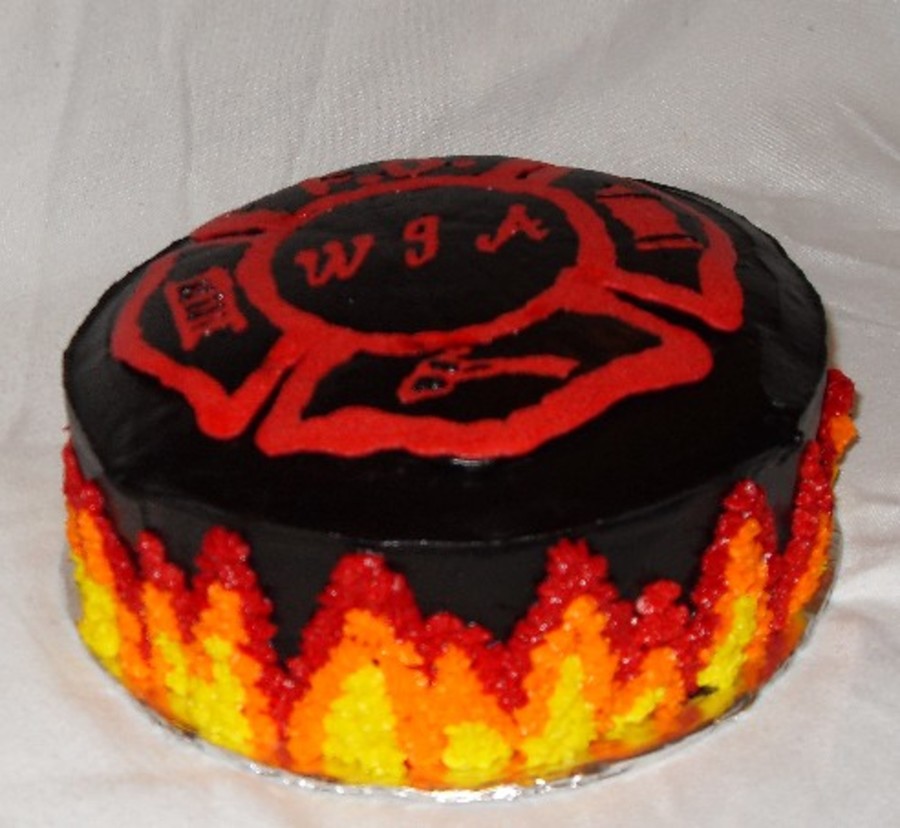 Strawberry cake with chocolate buttercream. I made the Maltese on top to match his necklace. Since I am still a beginner, comments and advice are always welcome! Thanks for looking!