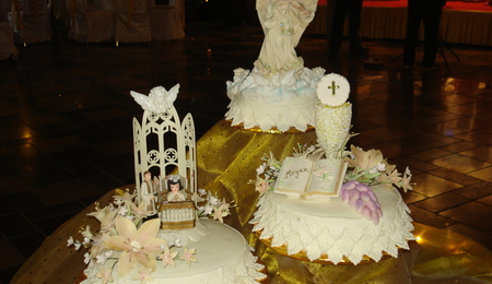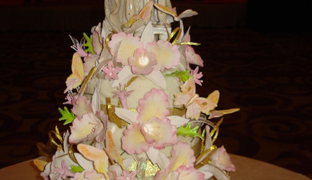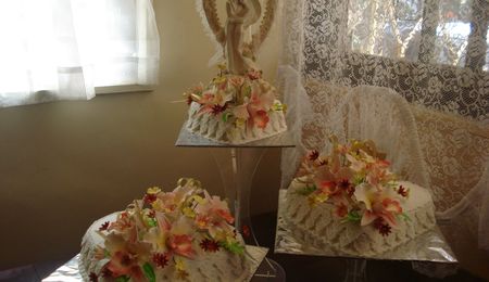 Rich fruit cake covered with Marzipan and fondant, Flowers of Gumpaste