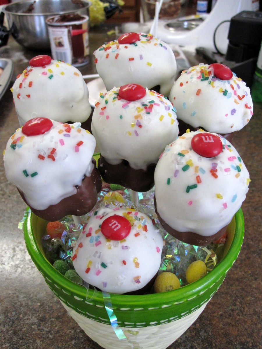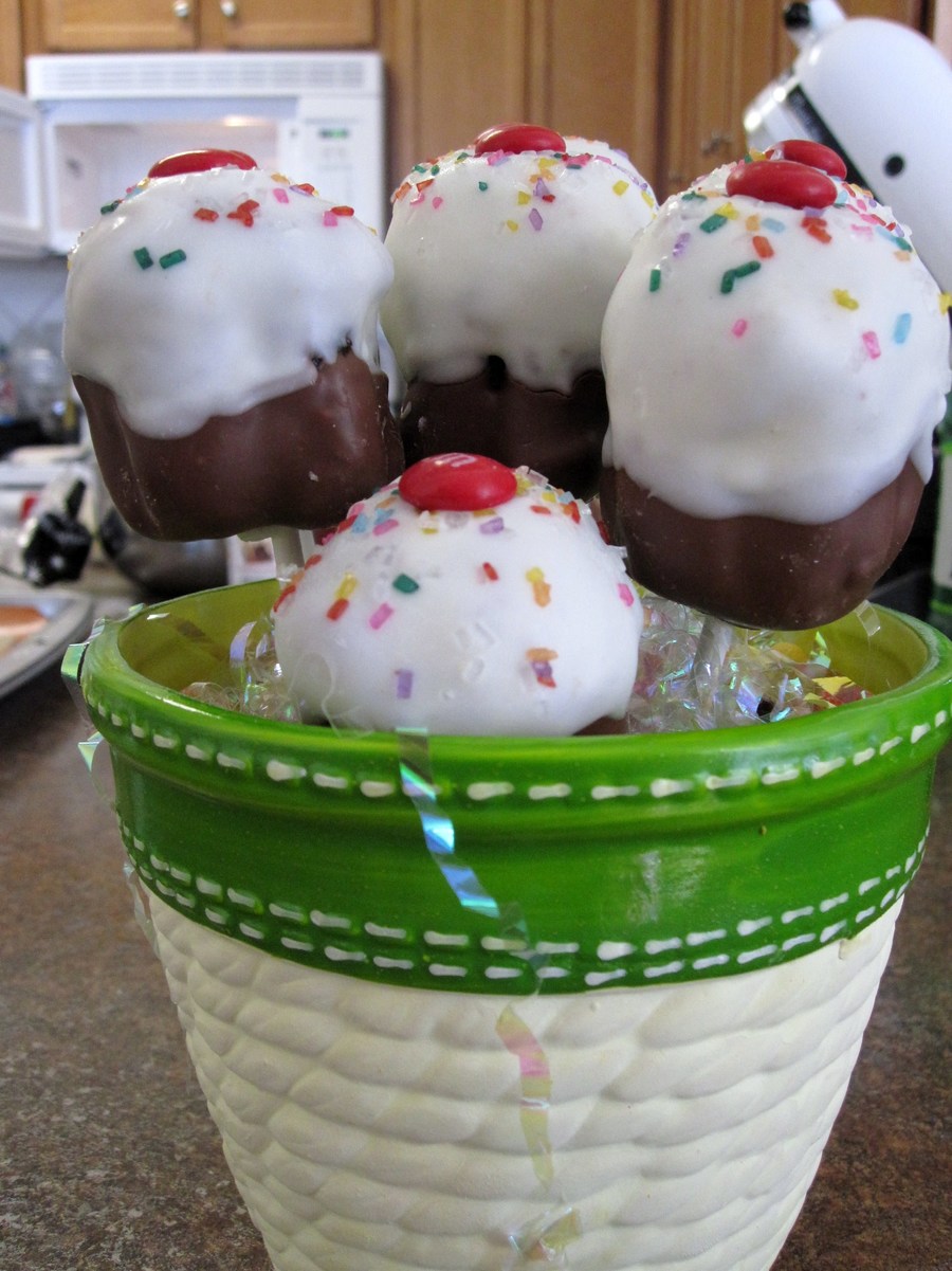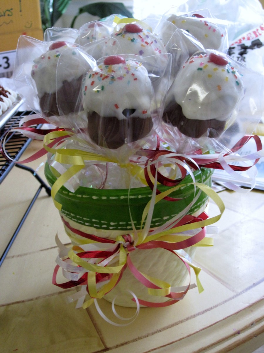 This is a cupcake bouquet I made for my son's teacher. They match the cookie cake in my other photos. I got the idea from Bakerella's Blog. So fun to make!