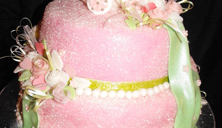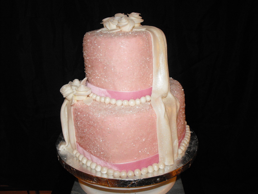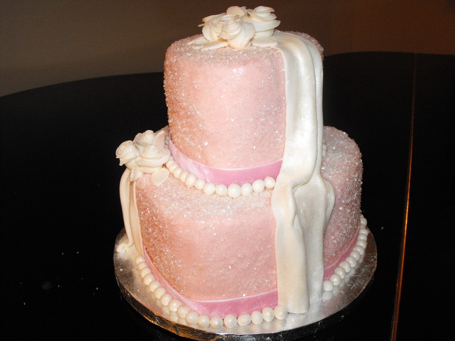 small wedding cake, pink fondant