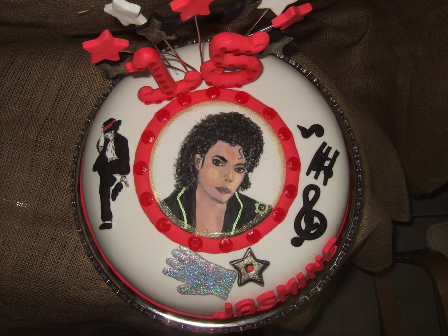 Nothing is impossible in life! Is my first completely edible Michael Jackson 15 years cake, except the the wire of the stars and numbers. With soft candy gems! . Vanilla cake with brandy syroup, almond buttercream and fondant.