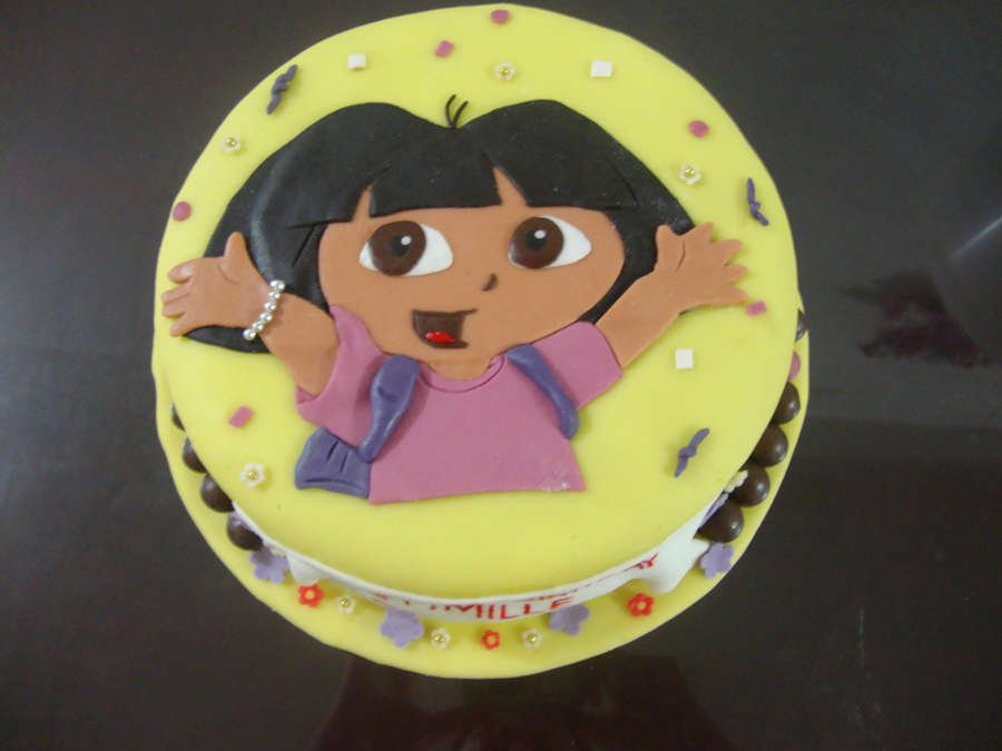 8" choco cake covered in fondant. accents are fondant. all edible.