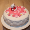 Chocolate sponge, blueberrymousse and white chocholate buttercreme, all fondant