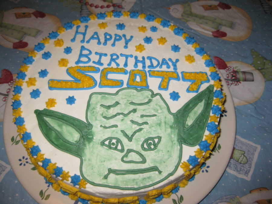 Cake for my hubby's birthday. Dk Choc Cake w/ White Choc Buttercream. Decided to freehand Yoda at the last minute. If only I had more time! It was the thought that counts!