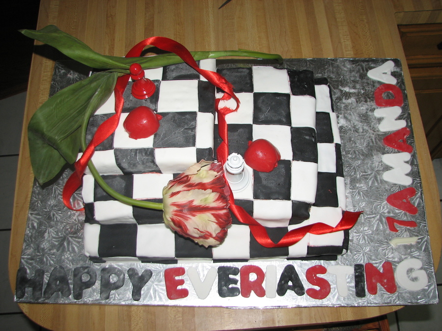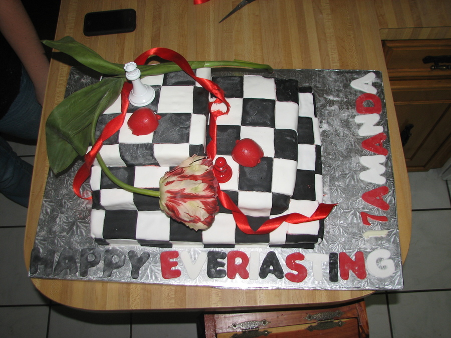 this was fun. I made it for my daughter. It is two layers for each step. The inside is red/black then cherry filling and white/black. The wording says "Happy Everlasting 17, Amanda." Edward is 17 and is never going to get older....