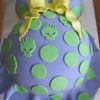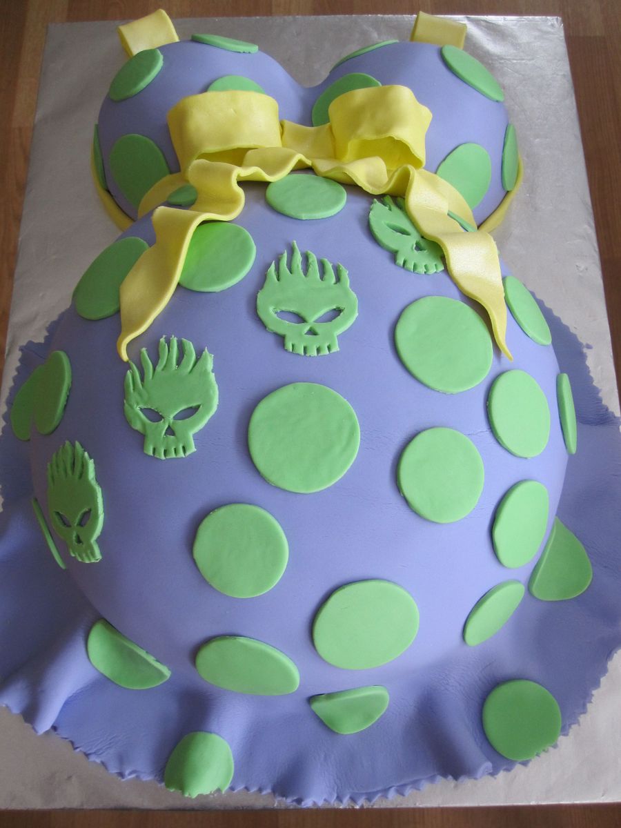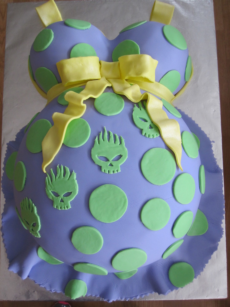 02/06/10 Anther baby bump...pretty much exactly like last weeks. I would have done my sister's differently had I known the color selection was going to be the same. Only other thing I would have done differently would have been to make all the polka dots skulls. This particular skull is The Offspring's symbol. Unfortunately, the symbol was a last minute request, so I just didn't have time to do more. :( Vanilla cream cake w/ raspberry filling, raspberry vanilla buttercream, & fondant
