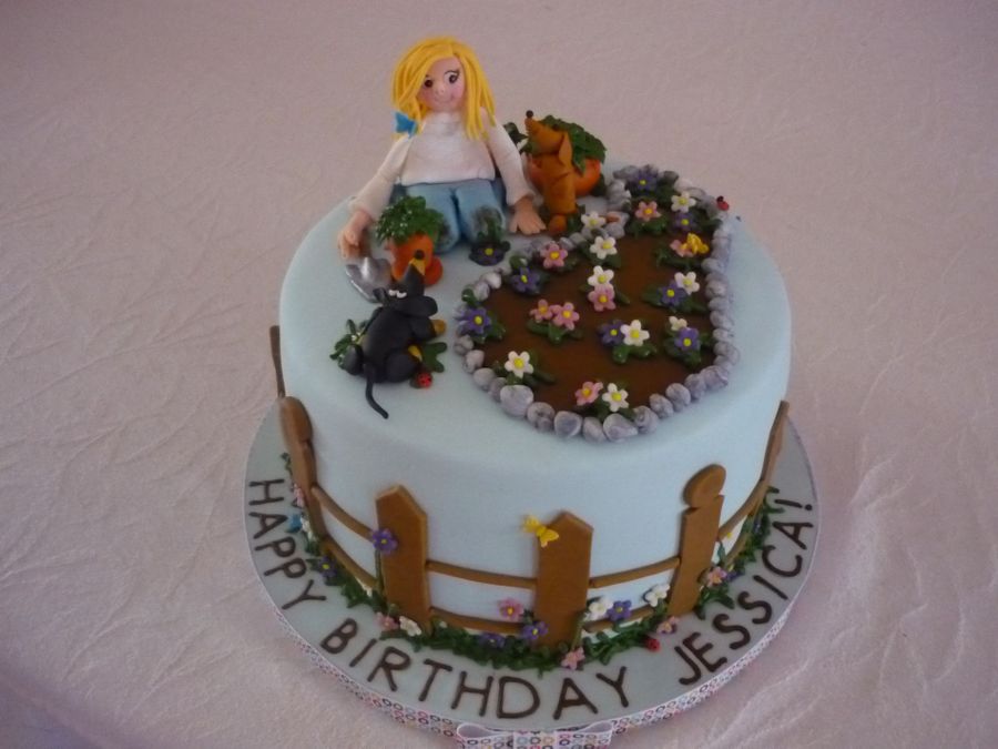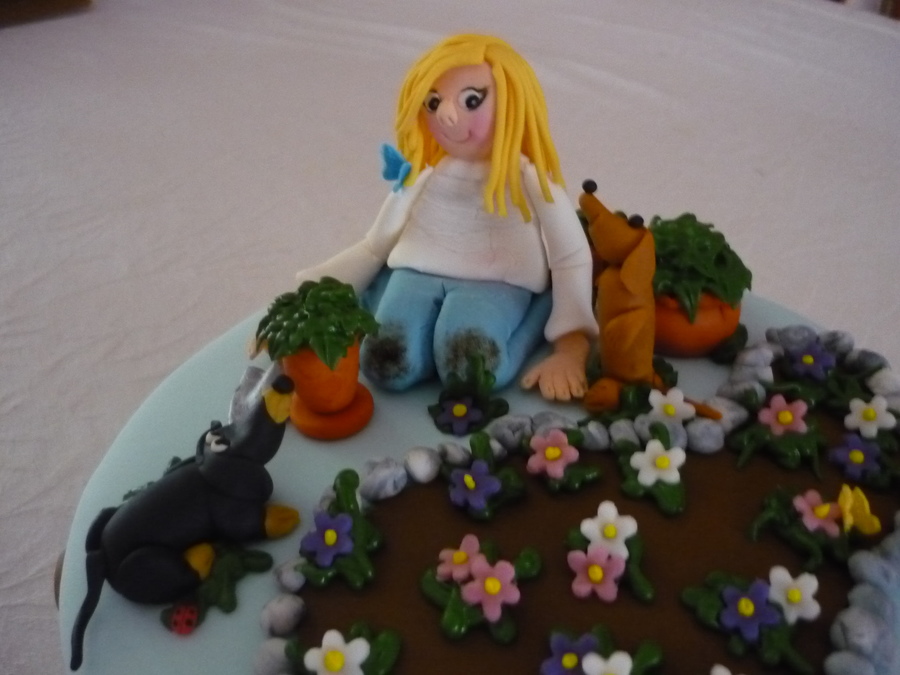 Birthday cake for an avid gardener and her two dachshunds. Got lots of inspiration from other gardening cakes here on CC