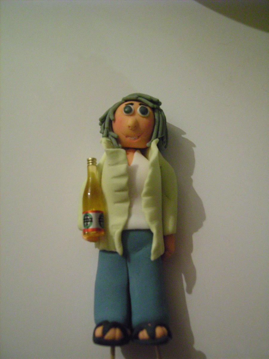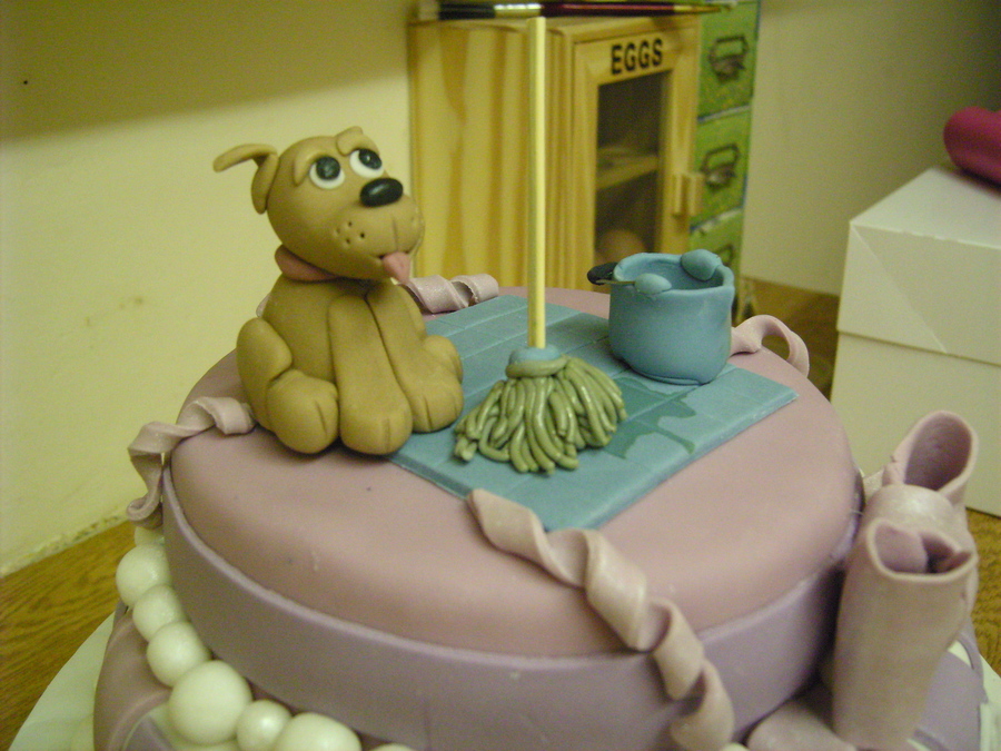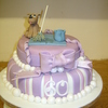 this was made for our cleaner at work's 60th. my first stacked cake and first attempt at a fondant figure-didnt get a photo with the figure ontop though(-it was eaten too soon! ) you can't tell from the photo's but all the white parts were covered with glitter.