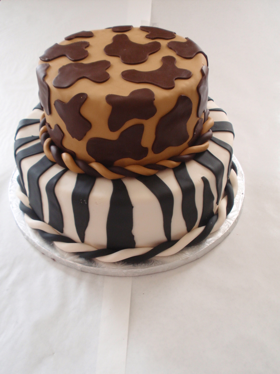Friends went to Africa and were have a slide presentation of their pictures. Wanted an animal print theme cake