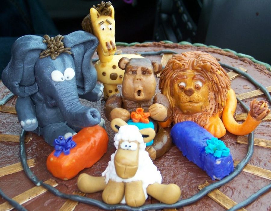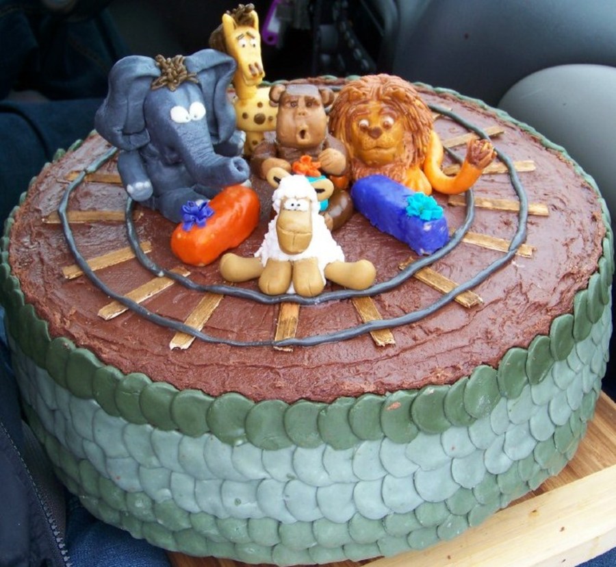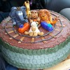 Chocolate pound cake/chocolate buttercream, stones and animals made out of modeling chocolate/gumpaste. 4th Cake.