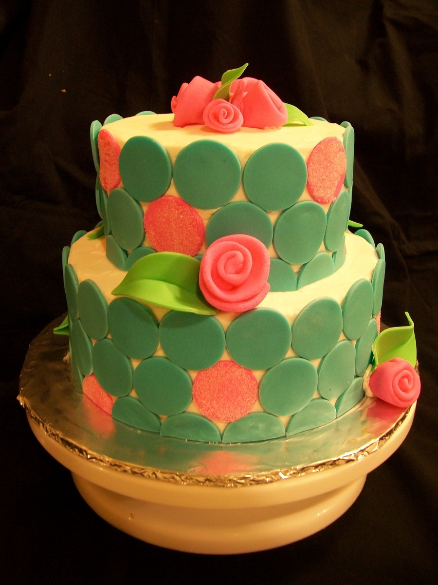 Buttercrean cake covered in fondant circles with fondant ribbon roses. I of course got the inspiration for this cake from several cakes here on cc. Thanks for looking!