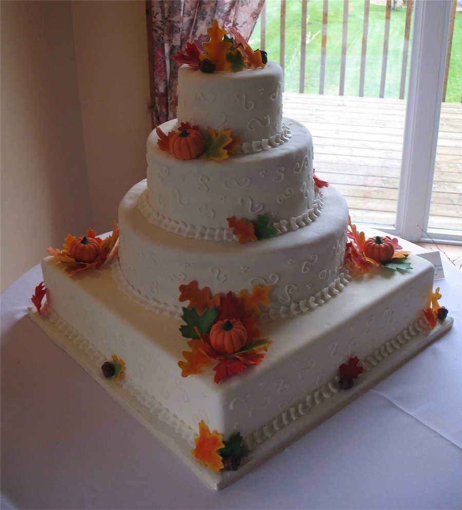I made this one for my step sister. Its covered with fondant, pumpkins and acorns are made from chocolate and the leaves are gumpaste