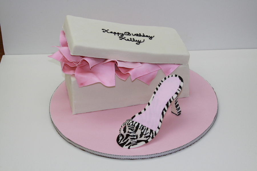 Made this cake for my sis's birthday. The cake is the shoe box covered in fondant. The tissue paper and shoe are made from gumpaste.