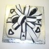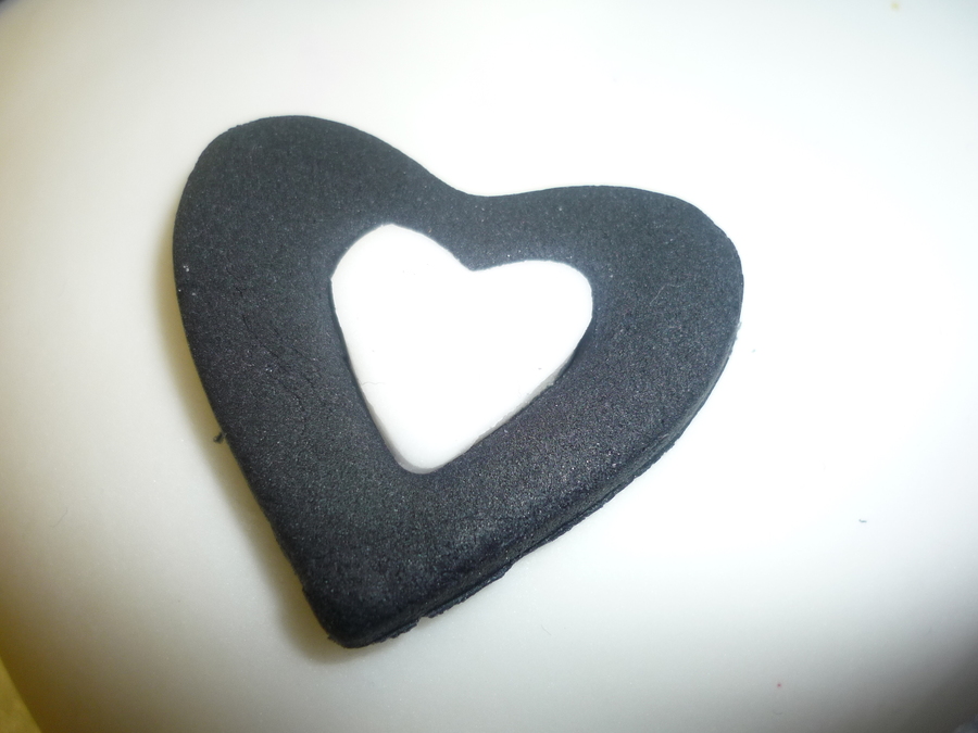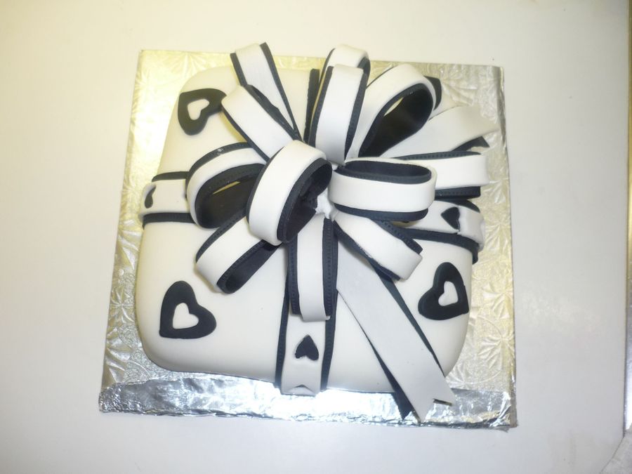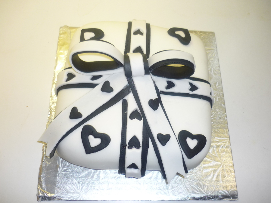 Red Velvet cake with cream cheese filling, iced with buttercream and covered in black and white fondant.