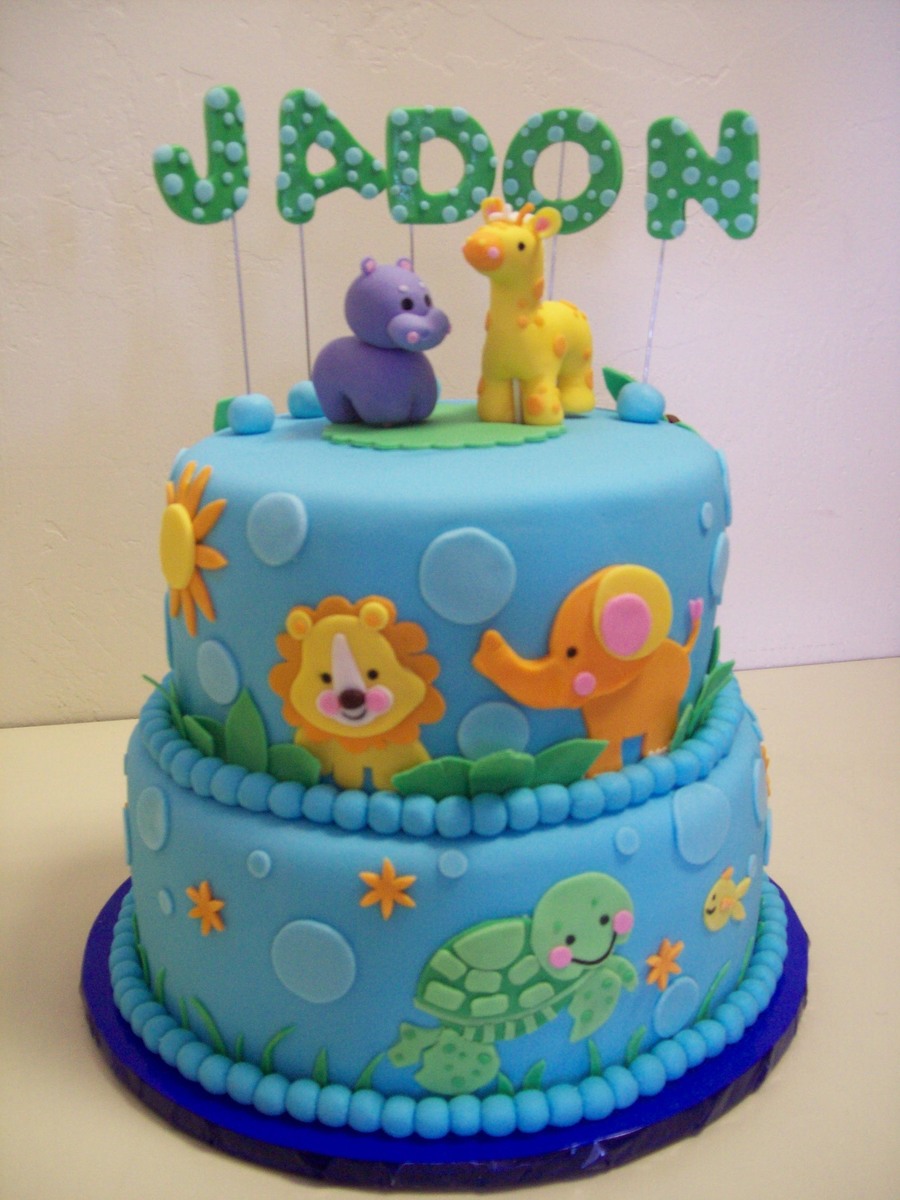 This is made from baby planet or planet babies I can't remember... Getting Too Old I guess lol. Any who, we made these cute animals from looking at toilet seats, bed sheets, and bibs. They do not sell 3 D animals although I can't for the life of me figure out why. I think people would buy these little critters up quick. Sorry got off the track.. My daughter is extremely talented and just created this whole cake. I am a very proud mama:)