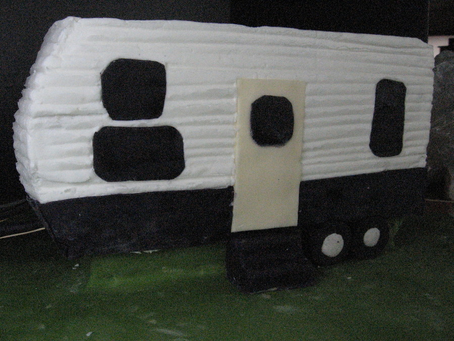 This was a birthday cake for a lady who loves camping at the lake. Buttercream with fondant accents.