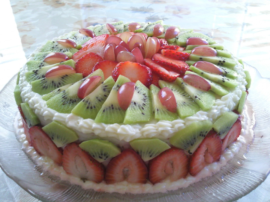 A simple cake I made with buttercream and designed the outside with fresh fruit. Enjoy (: