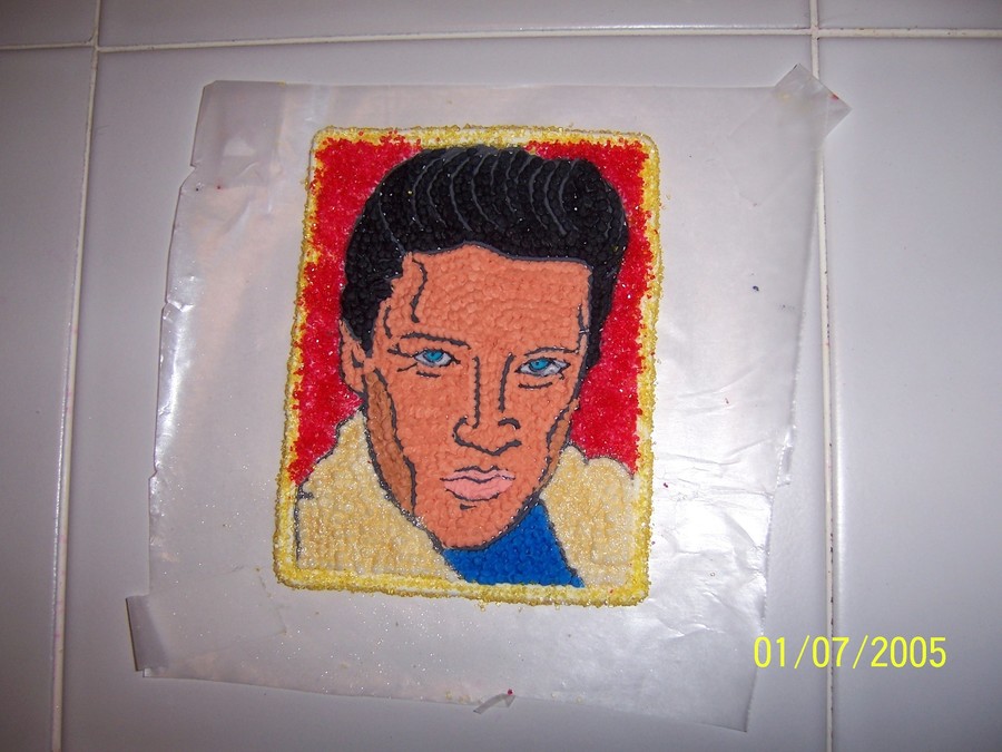 Elvis is made out of royal icing. Since I had to mail this all the way to California I decide to make a plaque and it actually made it in one piece.